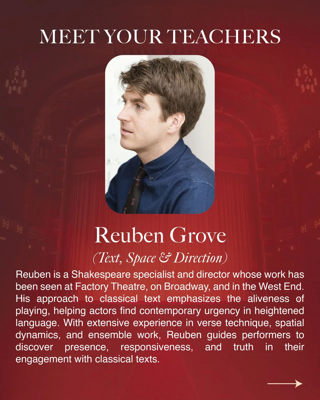 world-class practitioners from RSC, The Globe, and Broadway.