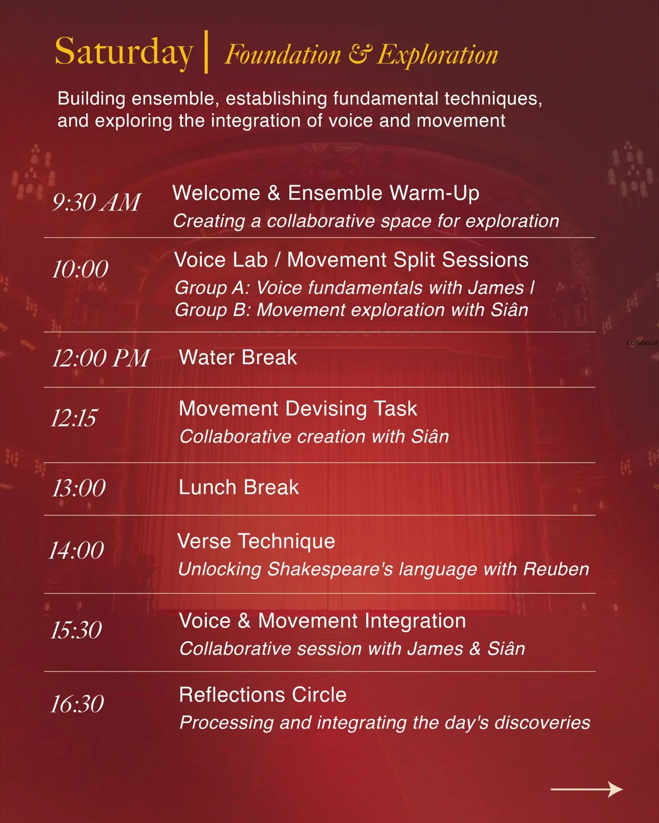 • Advanced movement for theatre – physical storytelling, precision, and embodiment